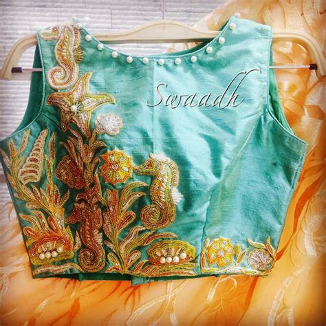 One side of this design is trending and one side ethnic. Posted by sara designer studio at 01:34 no comments: You can wear them with chiffon floral printed sarees and also with solid sarees. Aari work blouse with hand design.